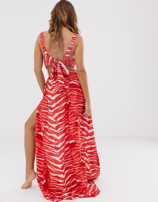 Asos design tie back cross front online split maxi beach dress in black