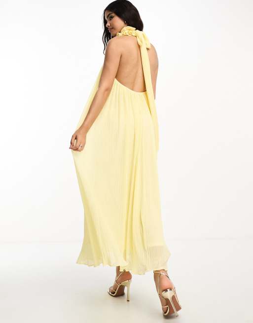 Asos design halter pleated bow online back maxi dress