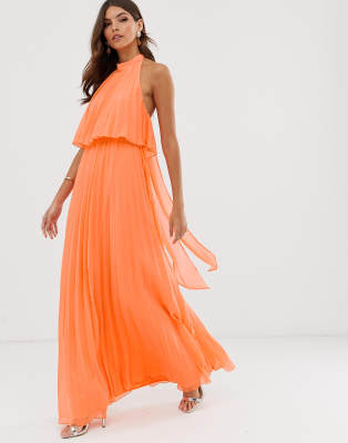Product Item: Asos design halter pleated bow online back maxi dress