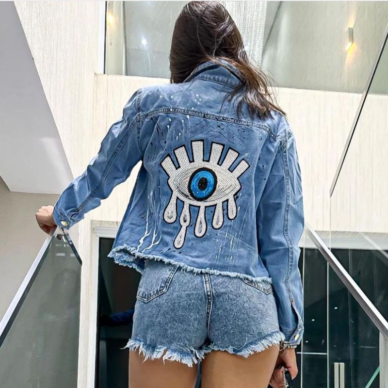 Jaqueta jeans online feminina bordada