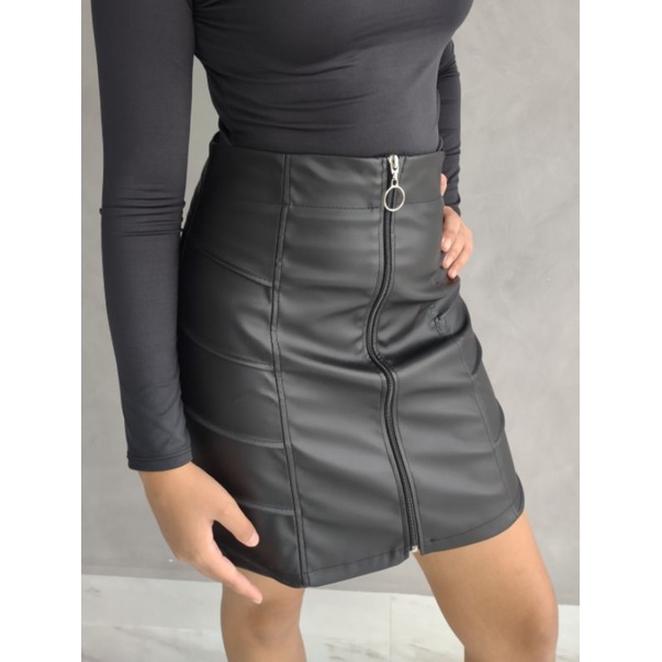 Saia de couro ziper na online frente